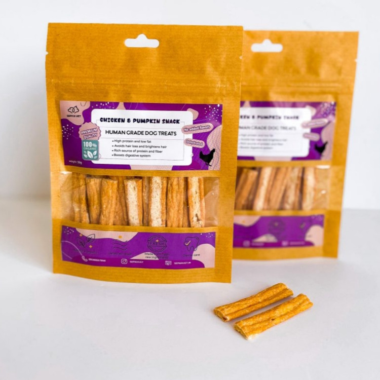 تشویقی سگ و گربه مرغ و کدوحلوایی(۵۰گرم)